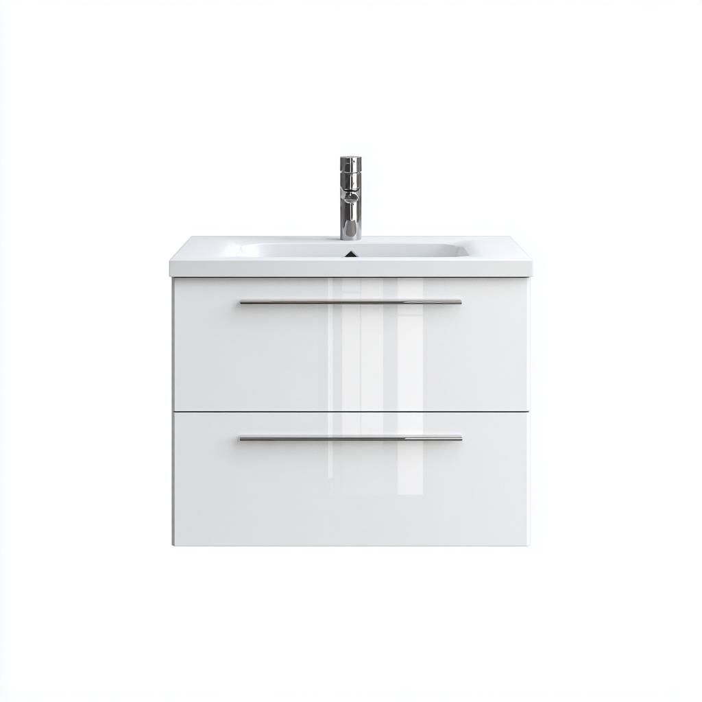 Mobile lavabo sospeso con lavabo integrato in ceramica e struttura in MDF 60x45 cm - bianco lucido - design moderno per bagno