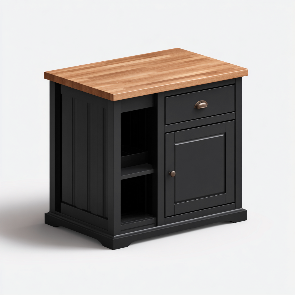 Questa isola da cucina compatta è pensata per ottimizzare lo spazio e migliorare l'organizzazione dell'ambiente cucina. Il design equilibrato combina una superficie di lavoro funzionale con spazi di contenimento pratici, risultando adatta sia a cucine di dimensioni ridotte sia come modulo di supporto.