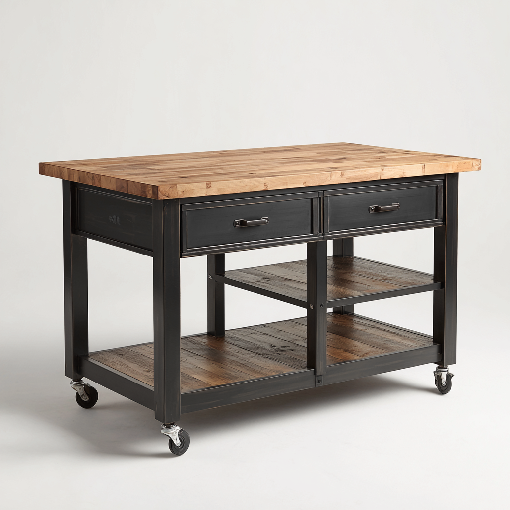 Questa isola da cucina in stile industriale è pensata per ampliare la superficie di lavoro e migliorare l'organizzazione degli spazi, risultando ideale per cucine moderne e ambienti open space.