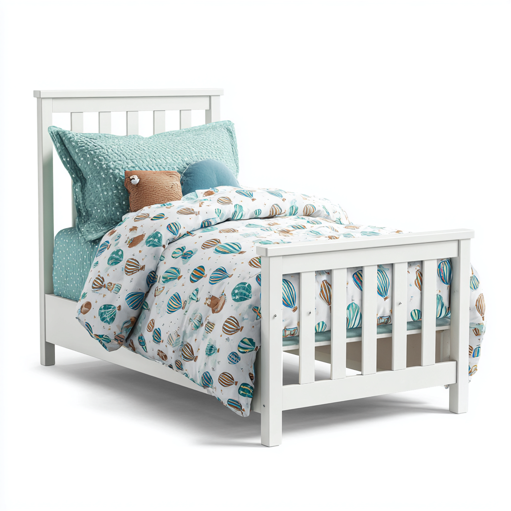 Questo letto per bambini presenta un design classico e rassicurante, ideale per accompagnare la crescita dei più piccoli nella camera da letto. La struttura compatta e le linee semplici lo rendono adatto a un utilizzo quotidiano confortevole e ordinato.