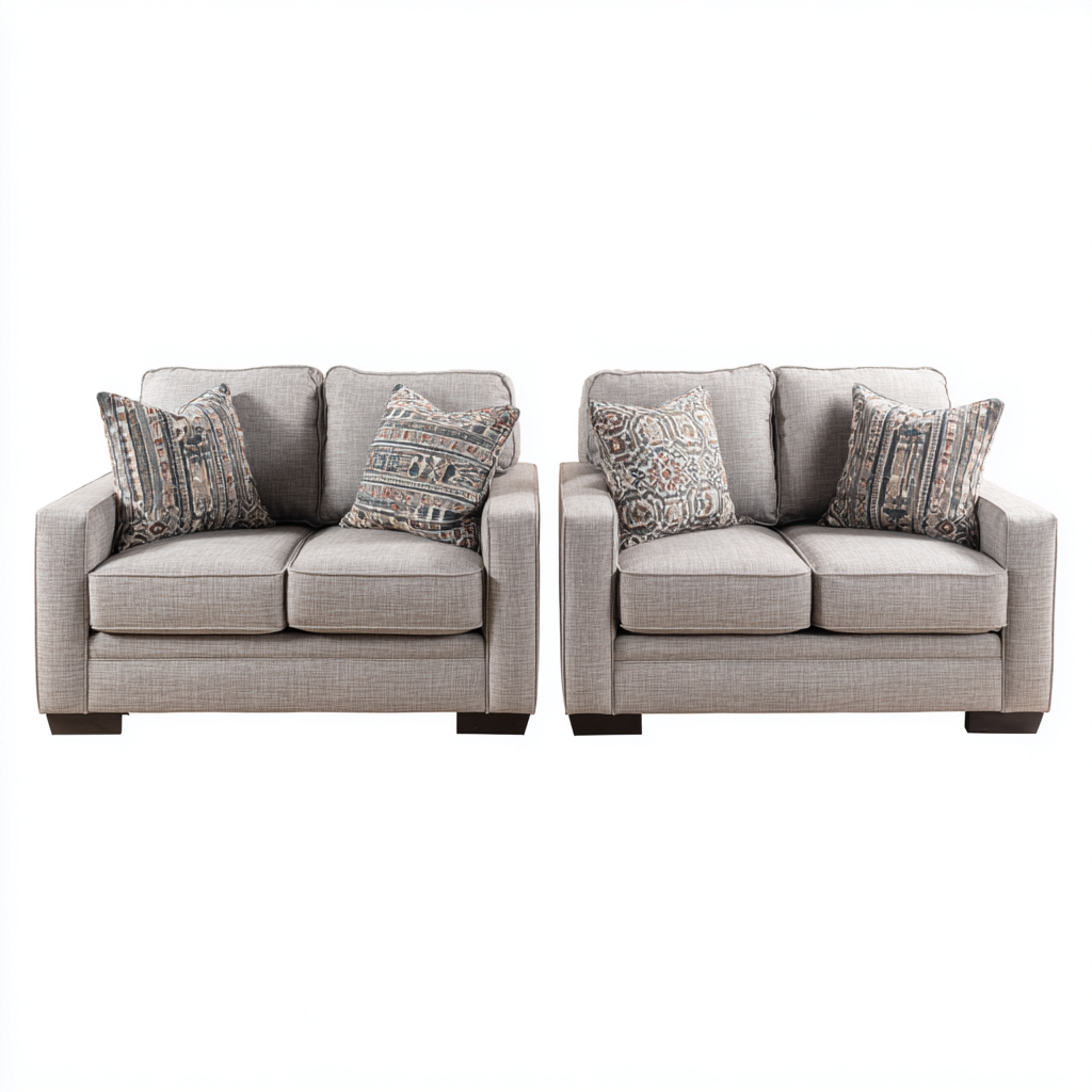 Questo set divani è composto da due divani coordinati pensati per arredare il soggiorno con equilibrio e funzionalità. Le linee regolari e la seduta imbottita offrono un comfort adeguato per l'uso quotidiano, rendendo l'insieme adatto sia ad ambienti domestici che a spazi di accoglienza.